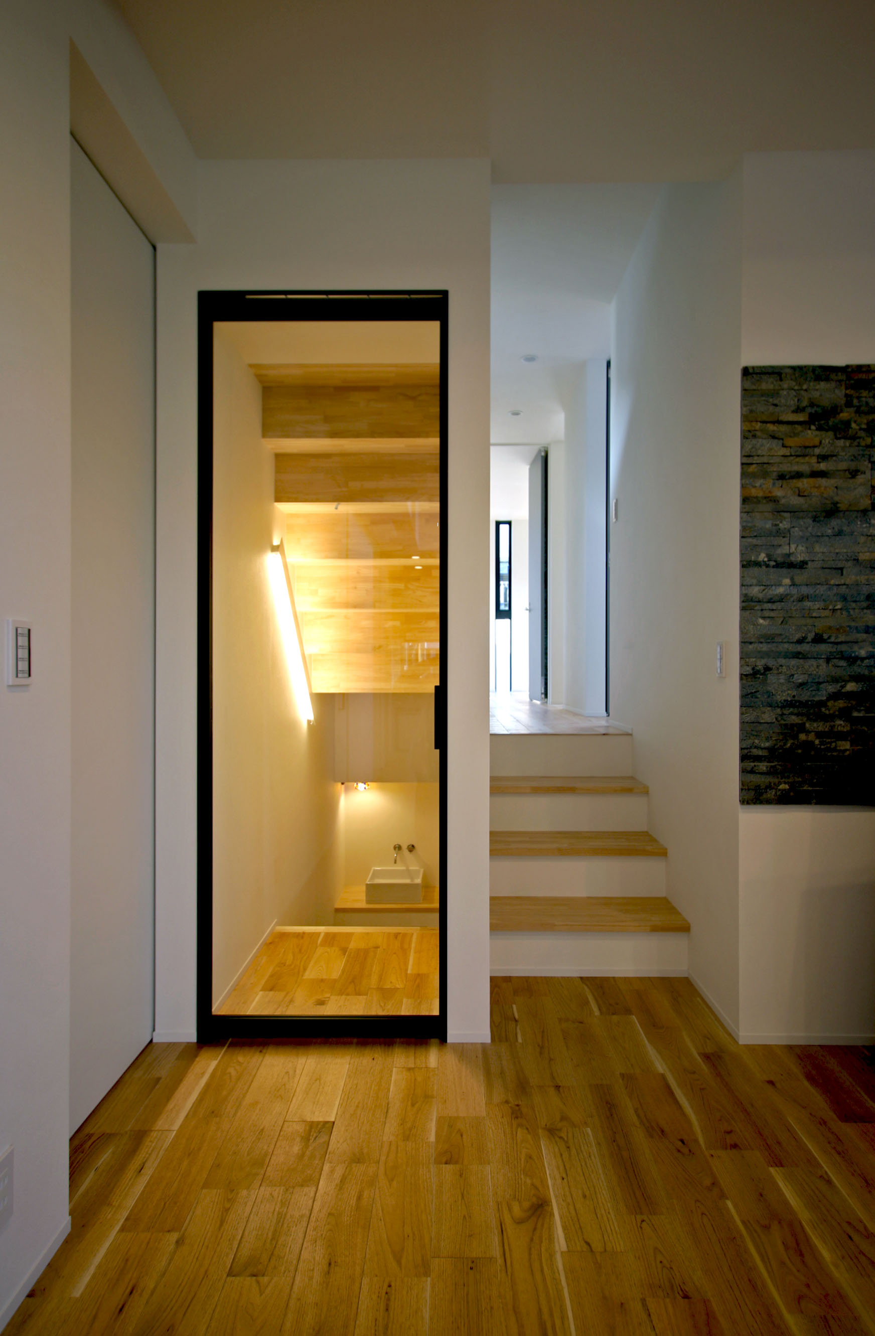 玄関スペースの1層目からメインであるLDK・水周りの2層目、持ち出した3層目には子供部屋を取り、最上階の4層目には主寝室と琵琶湖が見えるバルコニーを配置。