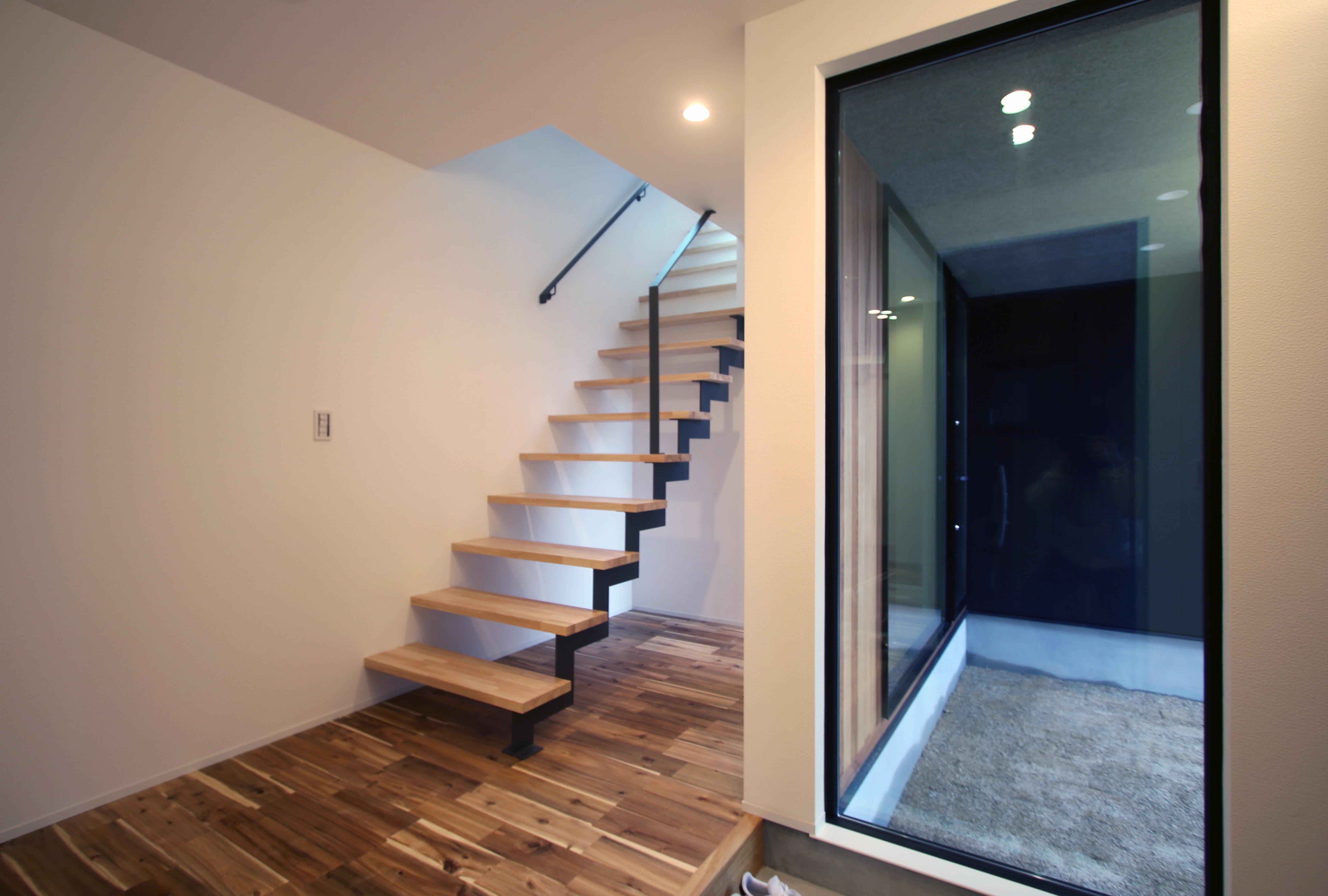 インナーガレージから中庭のシンボルツリーが眼を引きます。