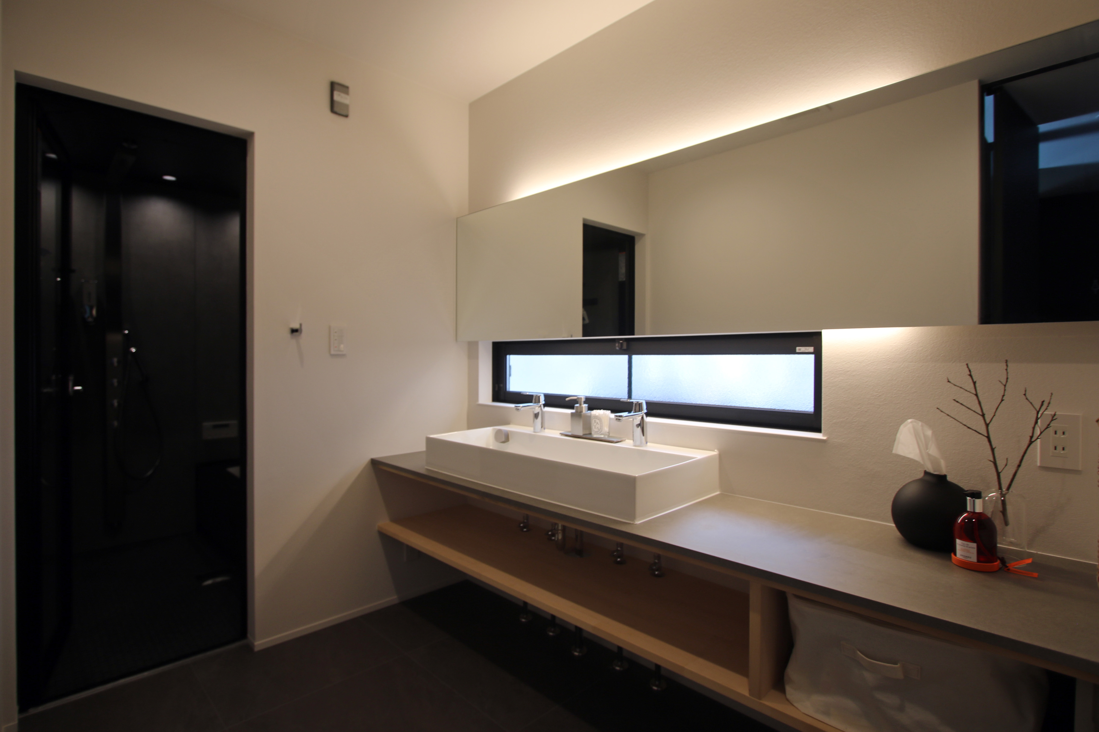 お施主様こだわりのシックな浴室が空間を引き締めてくれます。