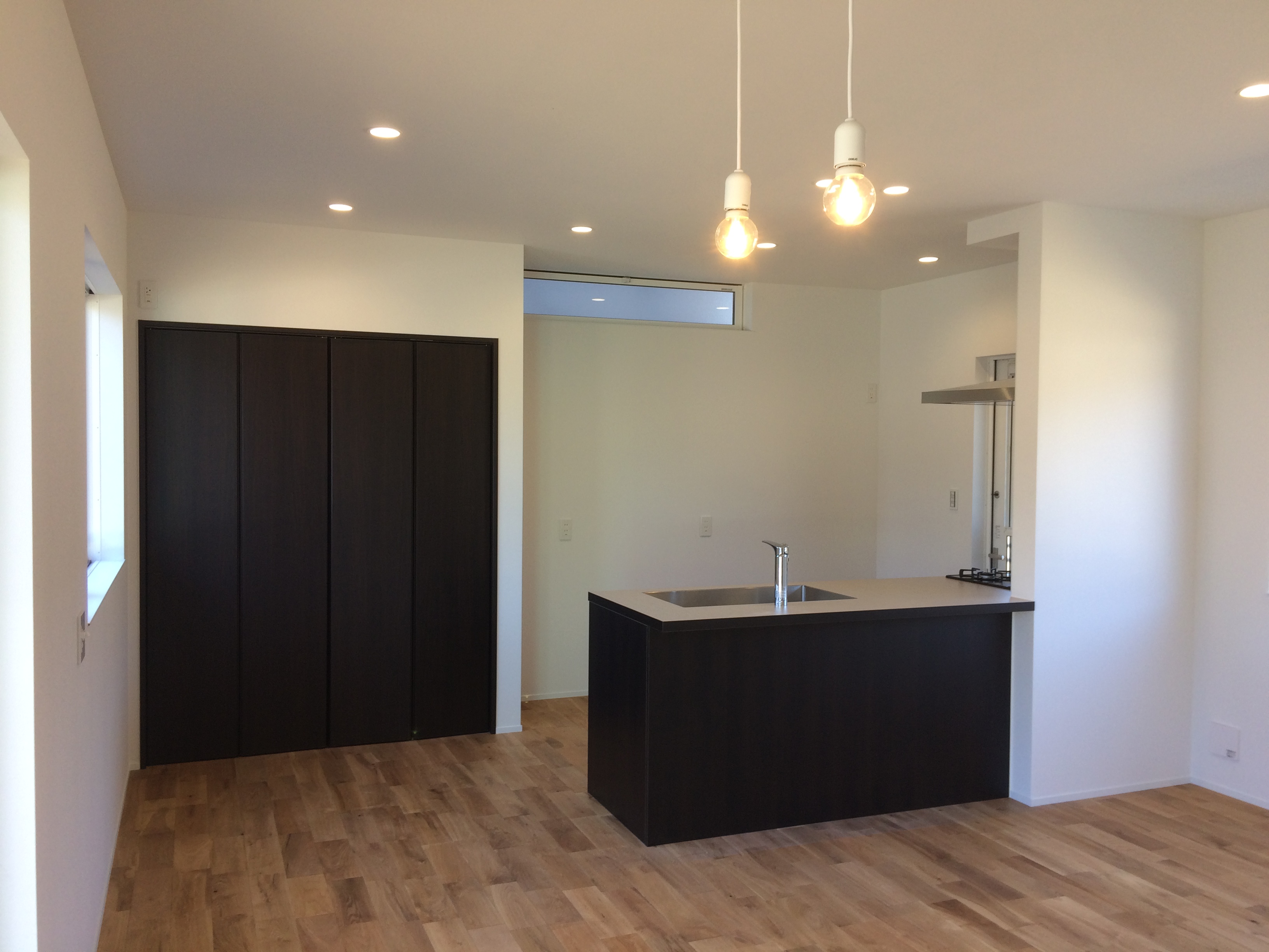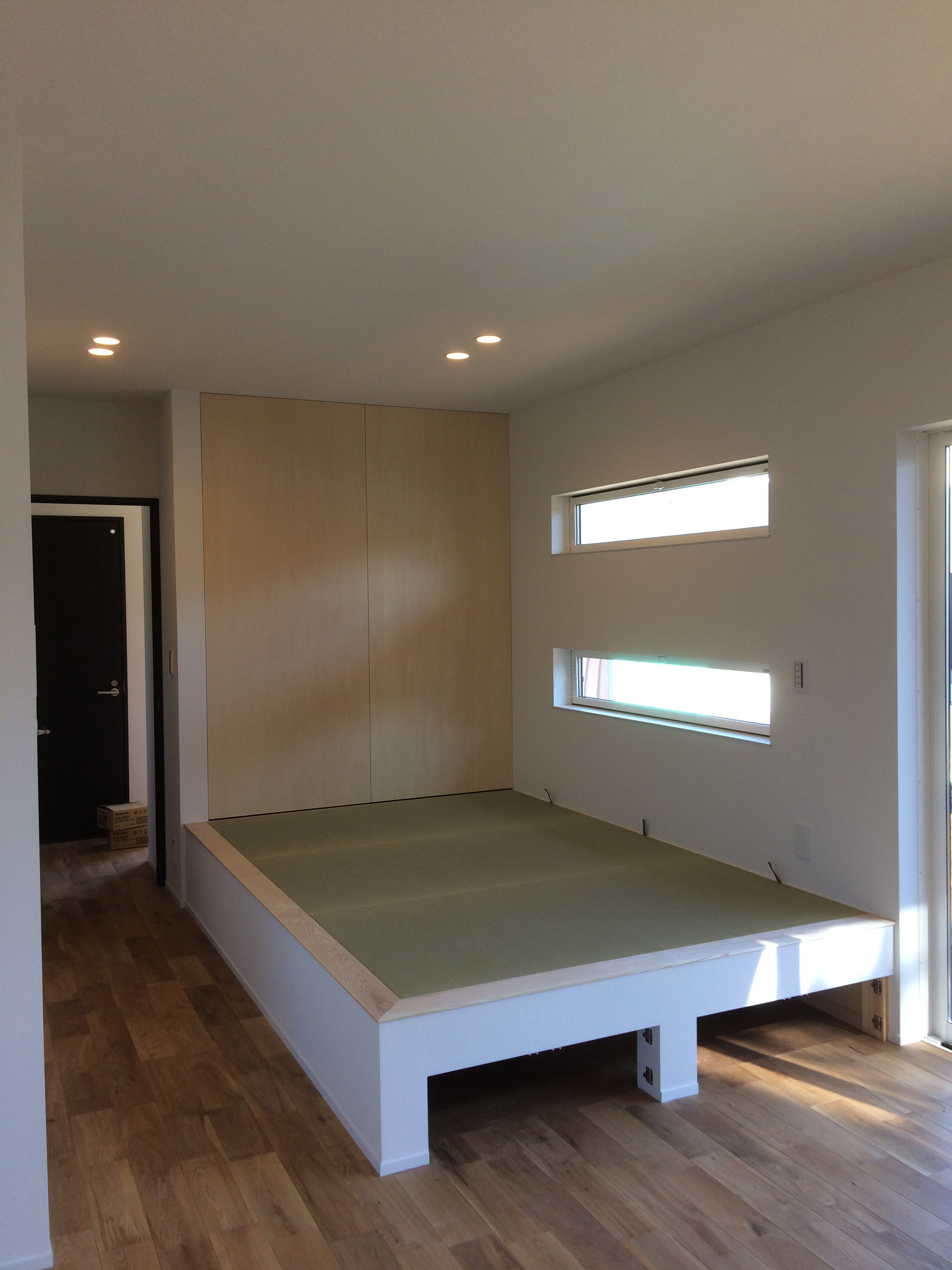 軒天にレッドシダーパネルをあしらい上下で2ブロックに別れる家を設計しました。