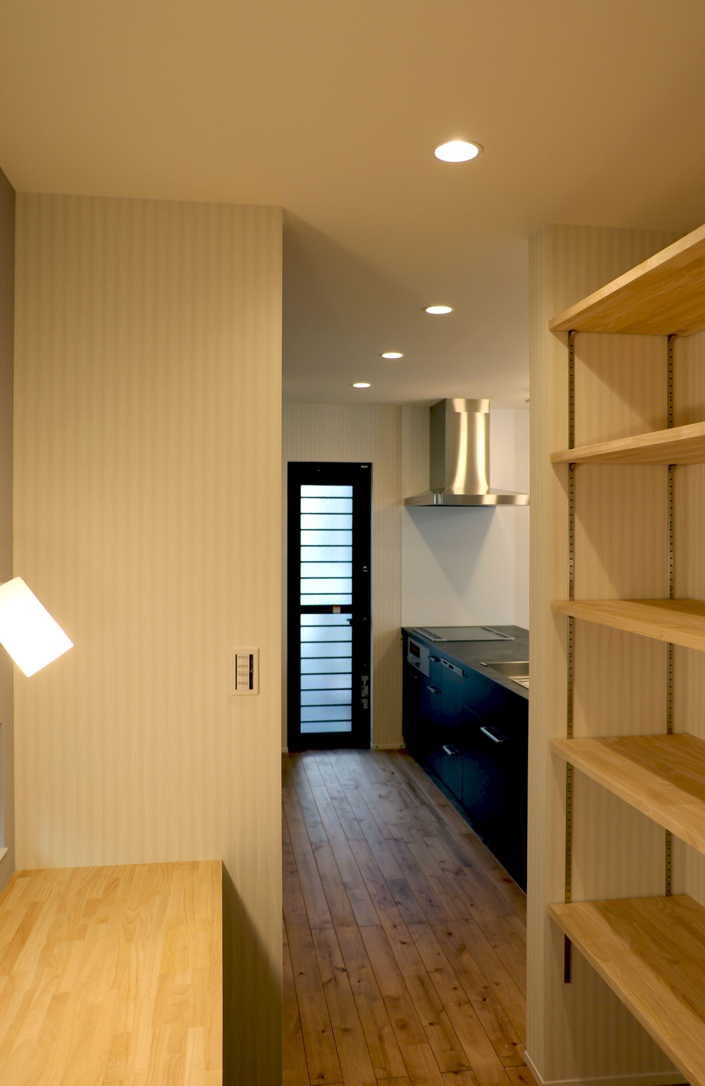シックな黒壁は吹き点け塗装でヘムの無垢板を張ることでグッと引き締まったわテイストに仕上がりました。 あくまでもスッキリと和の赴きもモダンに。