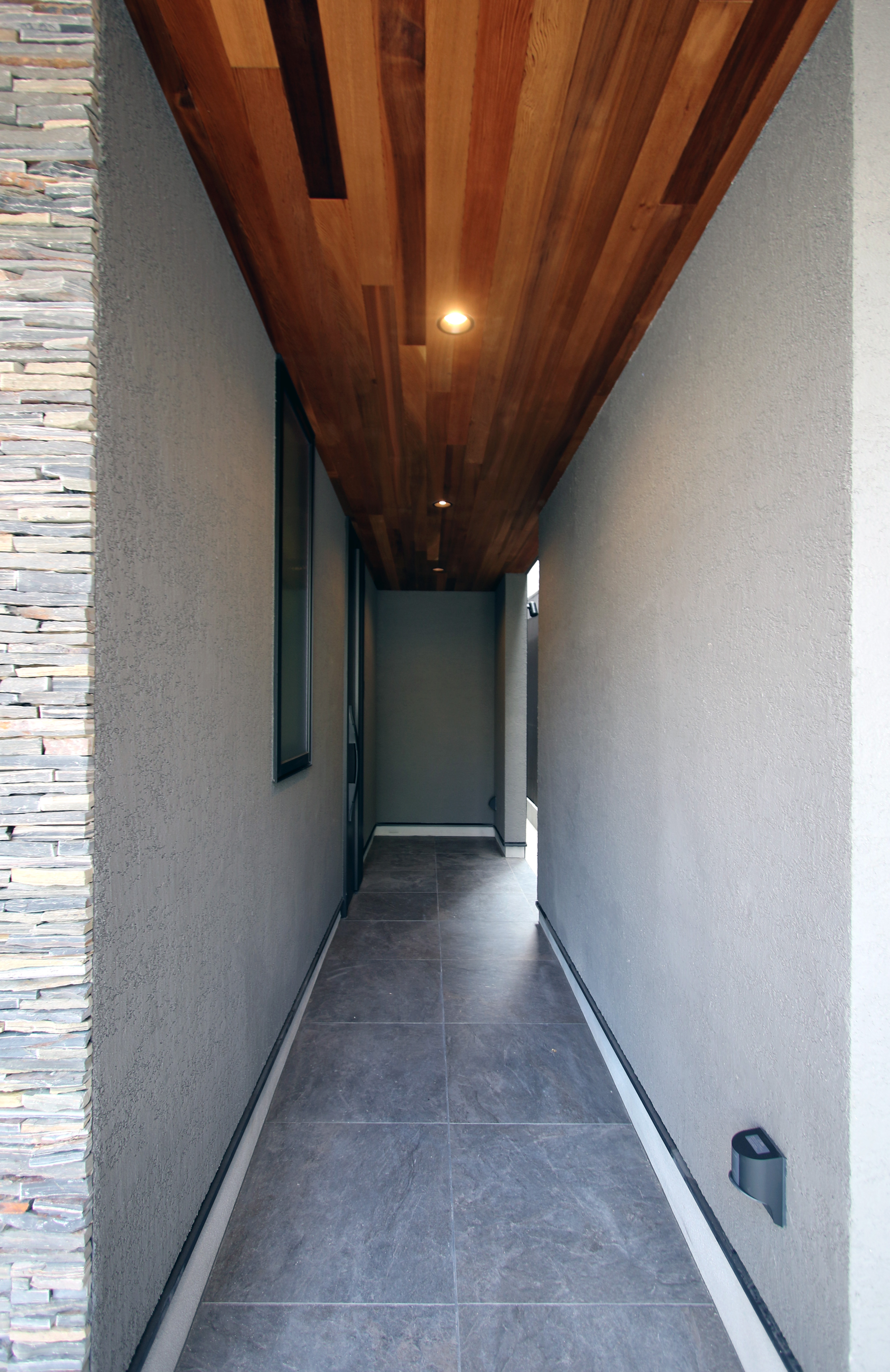 防火地域ながら外壁には防火対応のウッドウォールをふんだんに使用し、石積みタイルでアクセント付けし塗り壁の外壁で更に豪華さを演出しました。