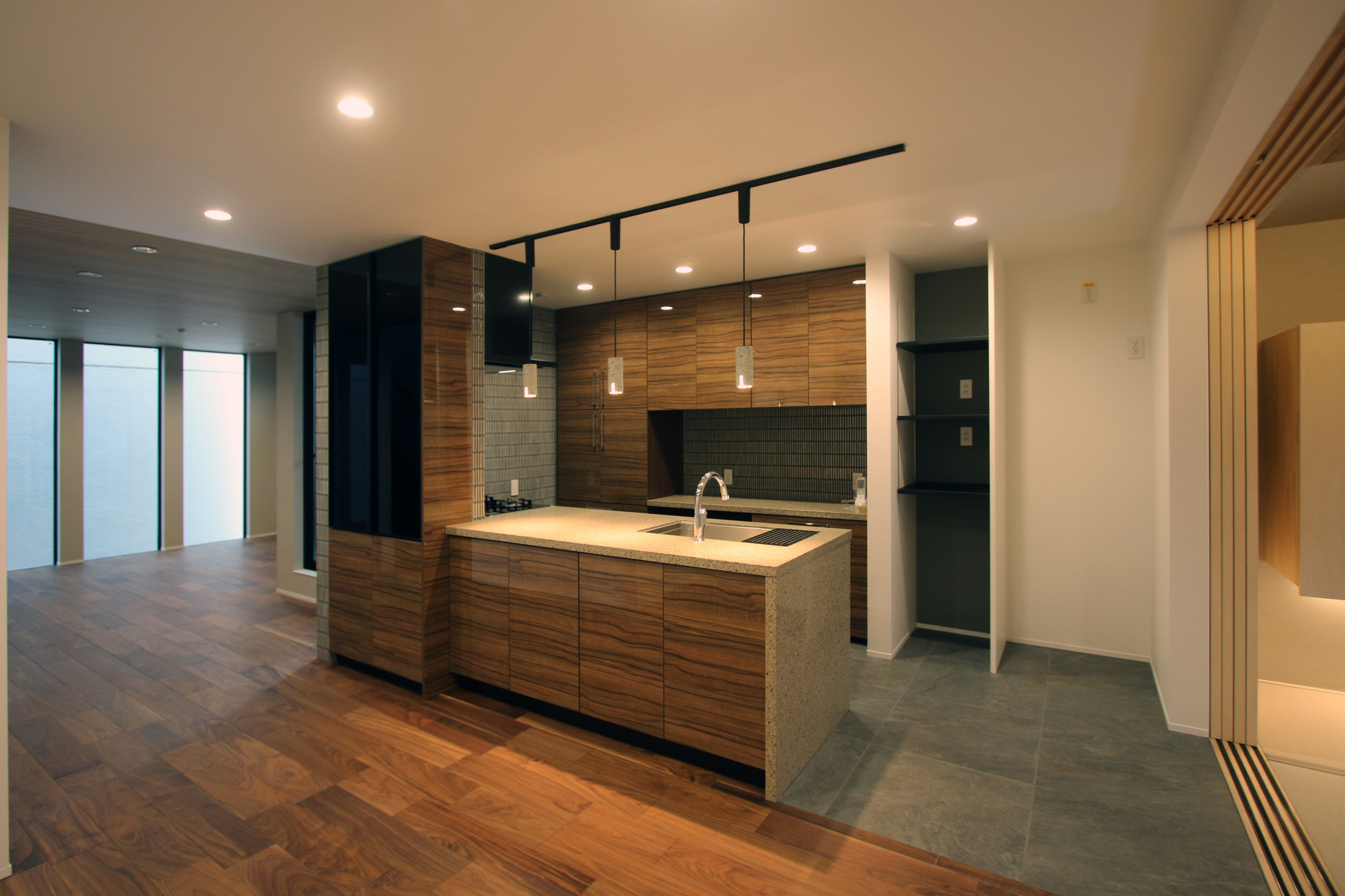 キッチンはクォーツストーンを天板にした特注のシステムキッチンをオーダー。