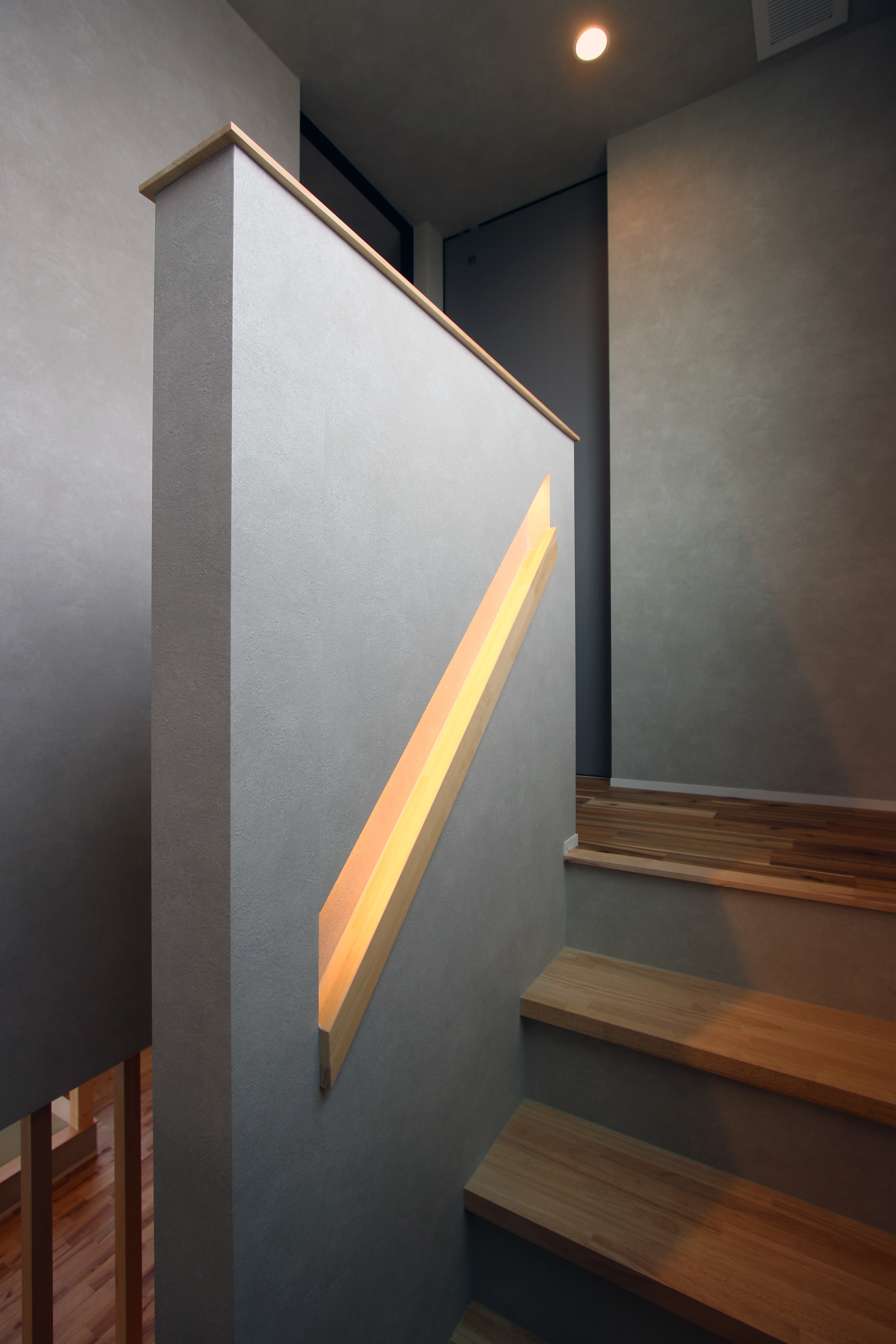 一部スケルトンの階段は間接照明を埋め込むことでリゾート気分をさらに演出します。