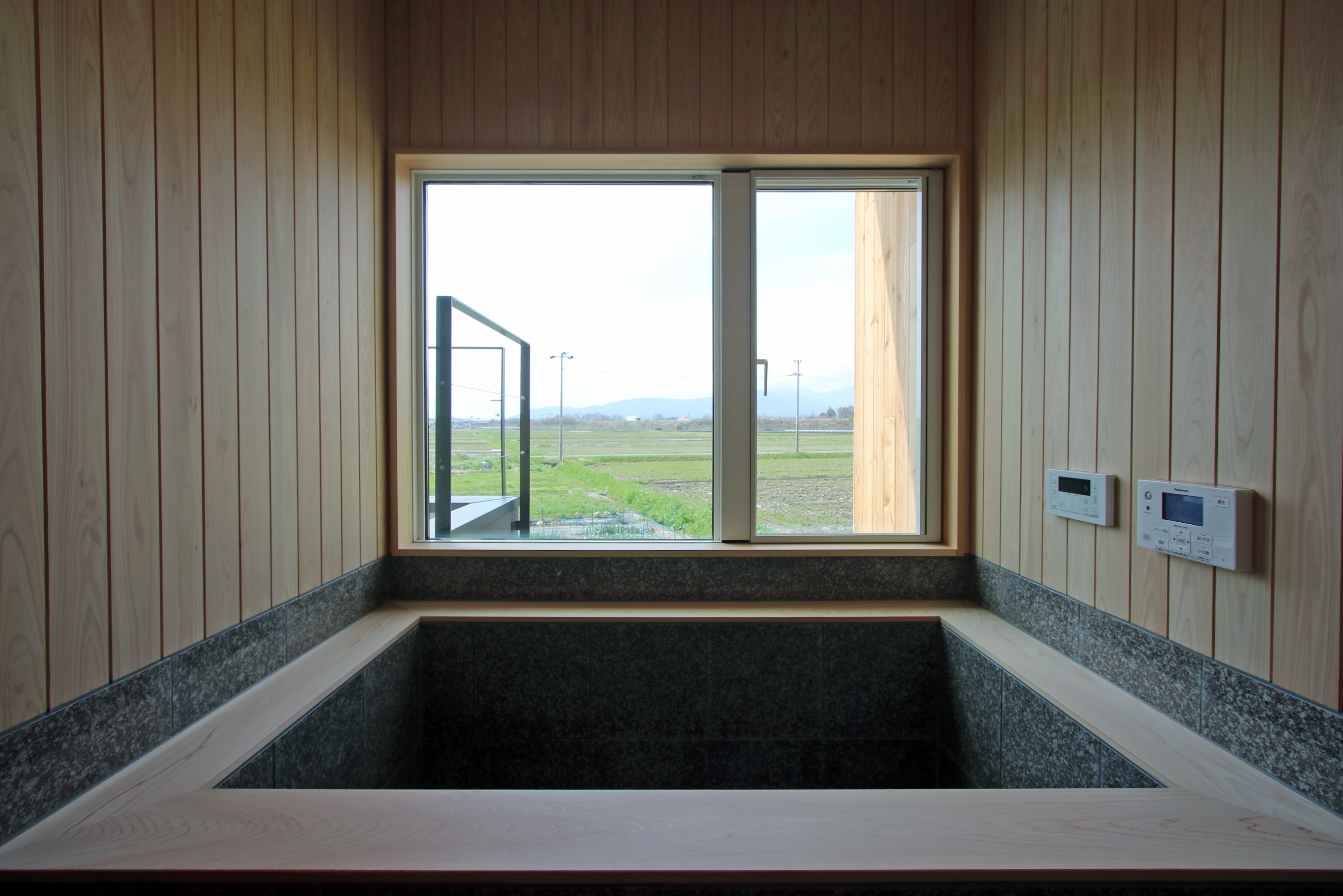 温泉付きと言うことで、2階に設けた浴室は総て造作で御影石の造作浴槽にヒノキ板貼りの壁が、よりリゾートテイストを味合わせてくれます。